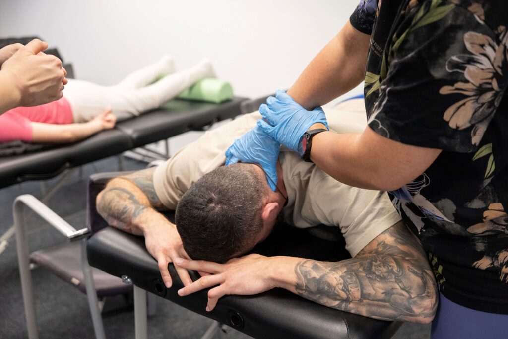 - Kompleksowe podejście do neuromobilizacji: Program kursu obejmuje pracę z całym ciałem, biomechanikę układu nerwowego, techniki pracy z nerwami kończyn górnych i dolnych (np. nerw pośrodkowy, kulszowy czy strzałkowy), a także neuromobilizacje rdzenia kręgowego i struktur centralnych, takich jak mózgowie czy pień współczulny.
